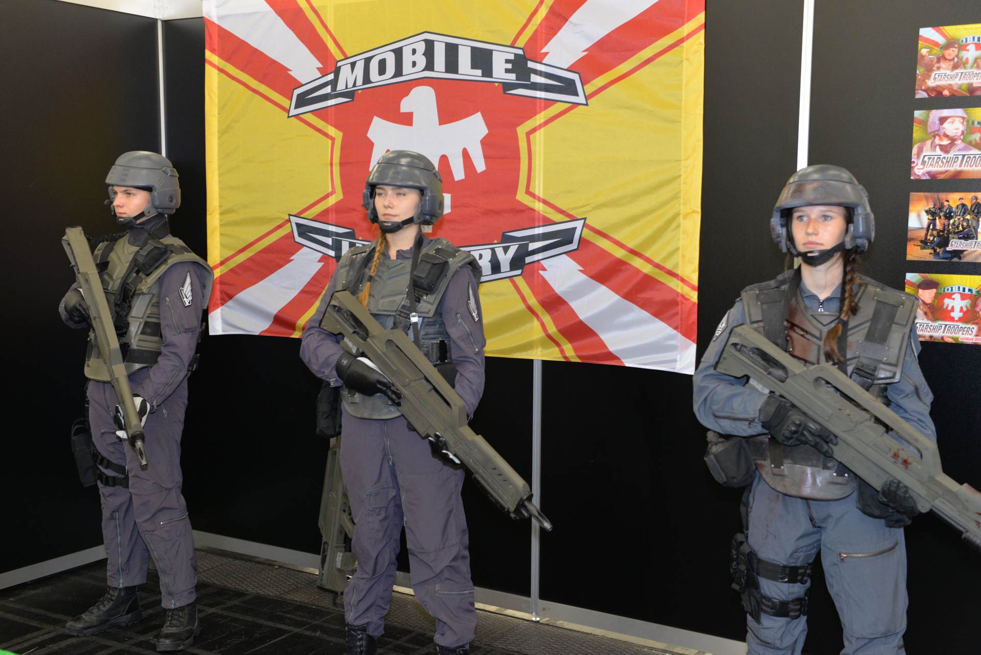 Zum grossen Glück trafen wir auf einen sehr netten und entgegenkommenden Fan-Gruppen-Betreuer der German Comic Con - Sven Vößing, welcher uns mit all unseren Sorgen und Ideen umfassend betreute. Dass wir für den Wettbewerb zugelassen werden erfuhren wir erst am Donnerstag Abend vor der Con, die ja schon am Samstag war. Das war schon eine echte Challenge. Zusätzlich wurde uns dann noch ein Fan-Stand zu unschlagbaren Konditionen angeboten, weil es offensichtlich zu einem Ausfall eines Teilnehmers oder Gruppe kam. Noch eine zusätzliche Challenge, die langsam an Panik grenzte. Noch schnell eben in den Baumarkt gejumped, um ein paar Materialien für den Stand zusammenzuraffen. Irgendwo hatte ich auch noch eine große Flagge der Mobilen Infanterie, aber wo nur, in welcher Kiste? Und als ob das nicht alles schon genug komprimiert ablief, ging dann auch noch mein Auto kaputt. Totalausfall, super-Klasse! SUCK IT UP N KEEP GOING. Genauso, wie wir's immer gelernt hatten. Und so fand sich dann auch eins nach dem anderen. Freunde unserer Gruppe engagierten sich in beeindruckender Weise und assimilierten nahtlos in unseren Trupp.