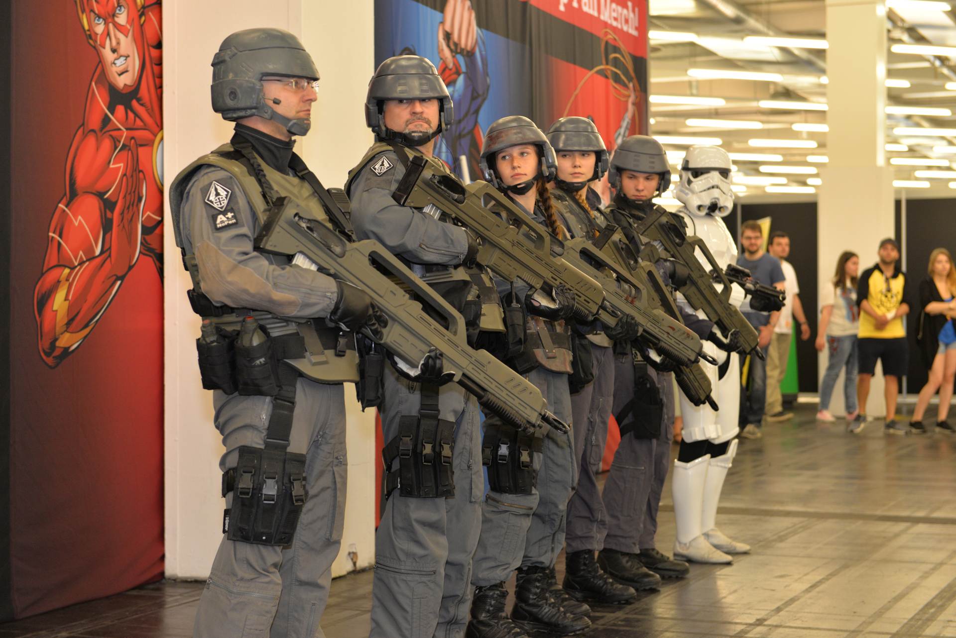 Die German Comic Con fand das erste Mal in München statt. Eine Premiere also. Aber auch für die Starship Troopers German Division war es eine Premiere, da wir bislang noch nie an einem solchen Event teilgenommen hatten und auch keinerlei Vorstellung vorhanden war, was uns da erwartet. Natürlich haben wir vorher mal ein paar Videos auf Youtube geschaut, was auf Comic Cons so abgeht. Viele bunte Menschen, die mininal durchgeknallt aussahen, Nerds und schräge Typen - schien optimal zu uns zu passen.